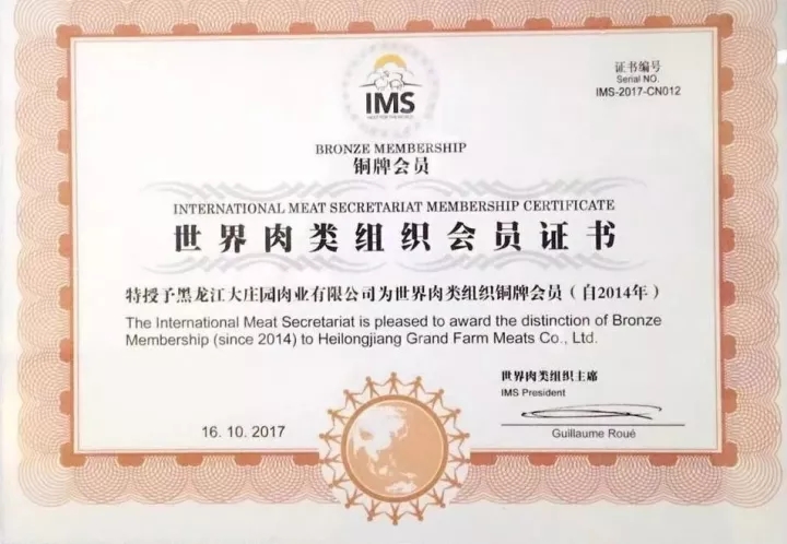 【實力收獲榮譽】大莊園獲世界肉類組織會員、中國肉類食品行業(yè)強勢企業(yè)稱號