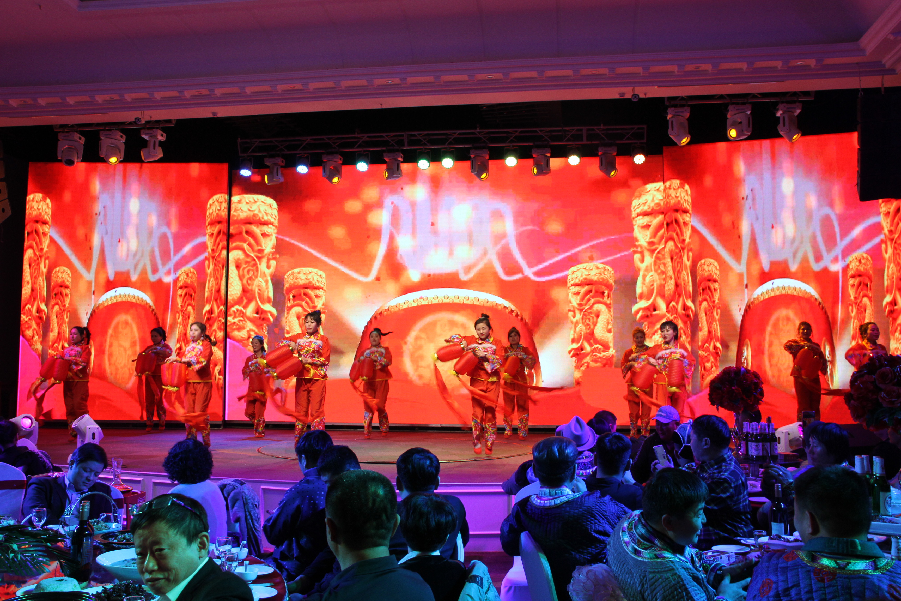 總結(jié)表彰大會之后,大家移身維也納金廳,一年一度的大莊園“春晚”在那里上演——這是大莊園人展示風采的最佳舞臺。在集團各部門、子公司及國外友人的祝福VCR播放之后,一場喜慶的開場舞《歡樂中國年》拉開了晚會的序幕。