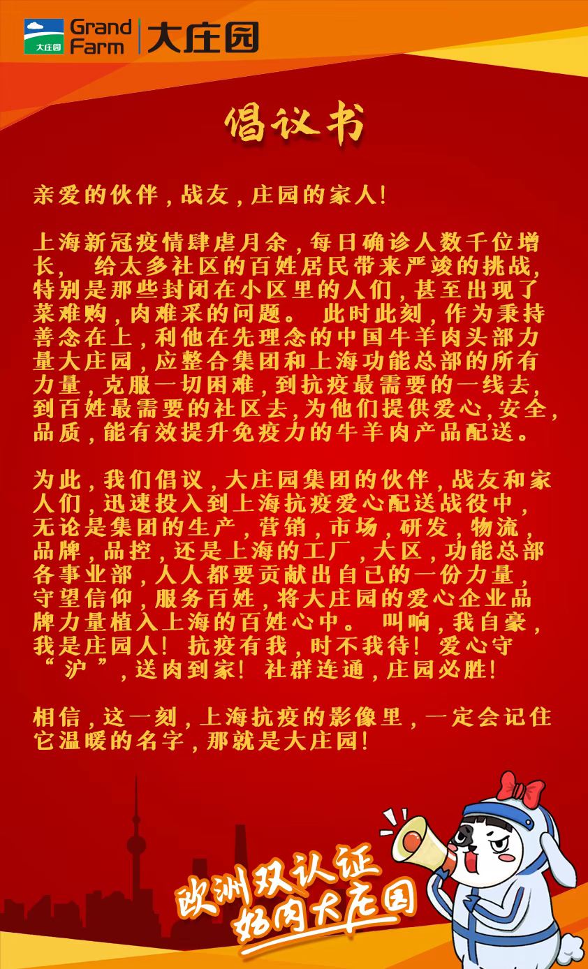 2020年疫情剛剛爆發(fā)的時(shí)候,大莊園就決定為百姓送肉上門,剛剛發(fā)出號(hào)召就有一百四十多位勇士沖向了線;2021年疫情再次反復(fù)的時(shí)候,又有多位英勇的莊園人挺身而出;如今,又到了莊園人展示風(fēng)采的時(shí)候!